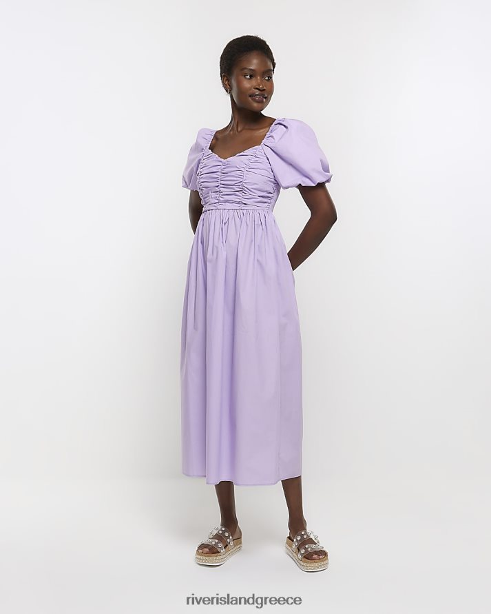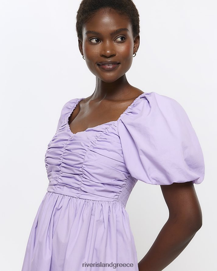 River Island ενδύματα μωβ γυναίκες φουσκωτό μανίκι smock μίντι φόρεμα B6N8X1219