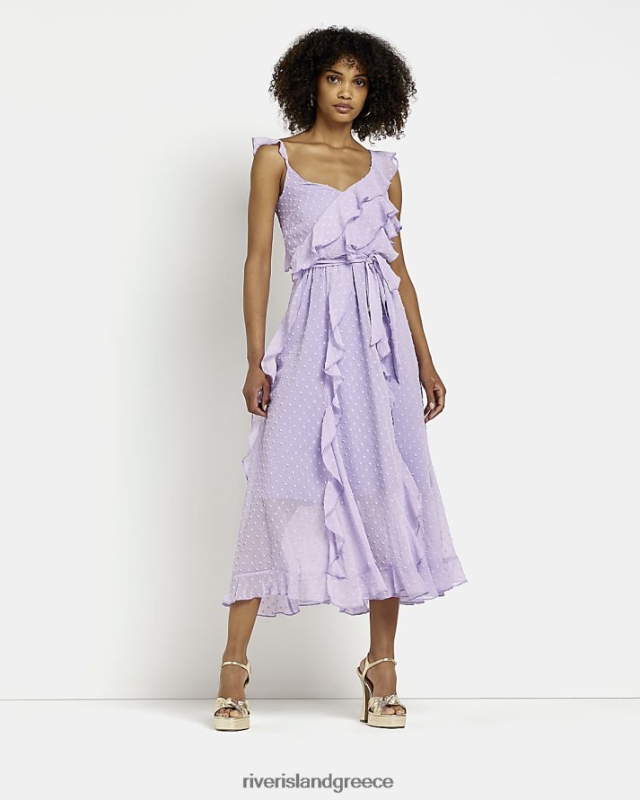 River Island ενδύματα μωβ γυναίκες midi φόρεμα με frill tie μέση B6N8X2020