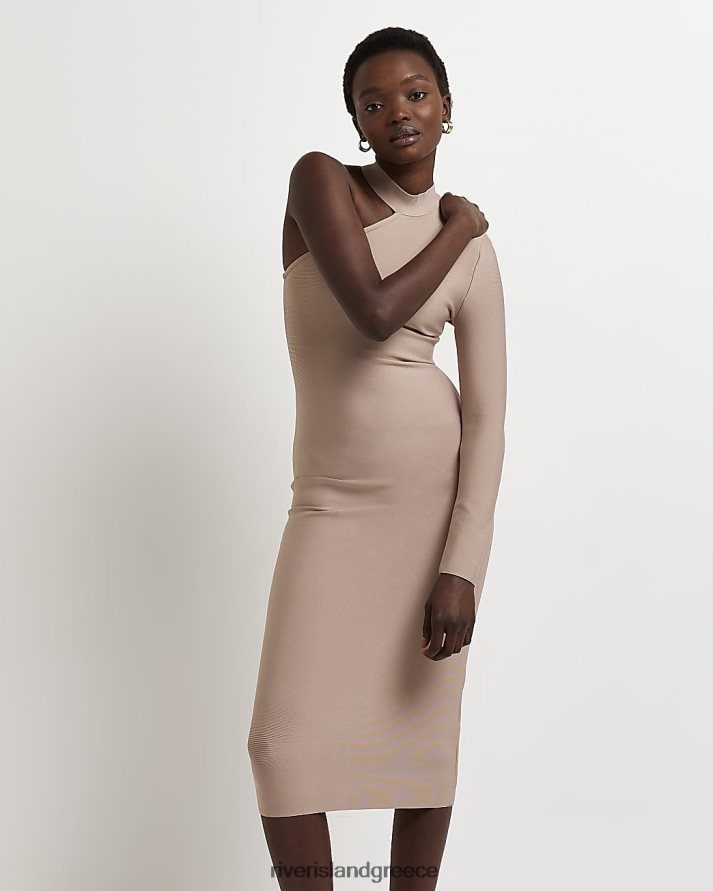 River Island ενδύματα πέτρα γυναίκες μίντι φόρεμα με έναν ώμο B6N8X566