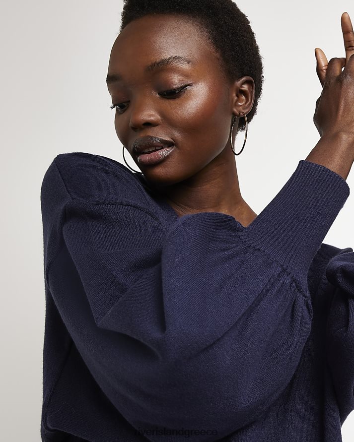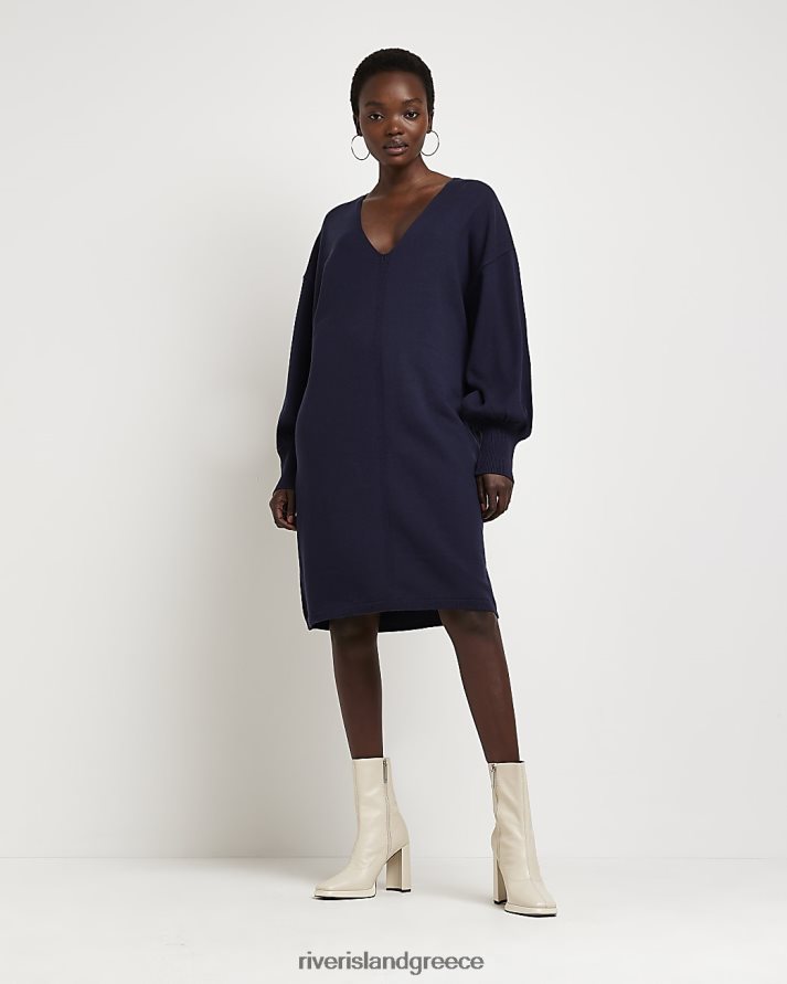 River Island ενδύματα ΠΟΛΕΜΙΚΟ ΝΑΥΤΙΚΟ γυναίκες μάλλινο πλεκτό μίντι φόρεμα B6N8X3962
