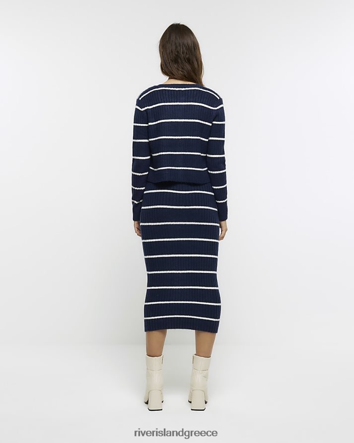 River Island ενδύματα ΠΟΛΕΜΙΚΟ ΝΑΥΤΙΚΟ γυναίκες μίντι σετ φορέματος πλεκτό ριγέ bodycon B6N8X108