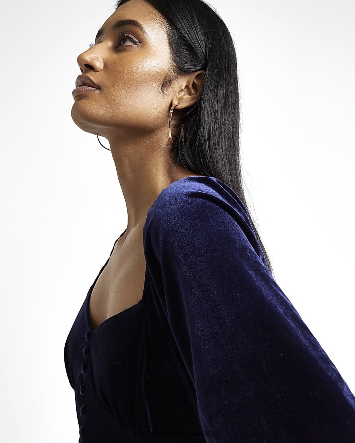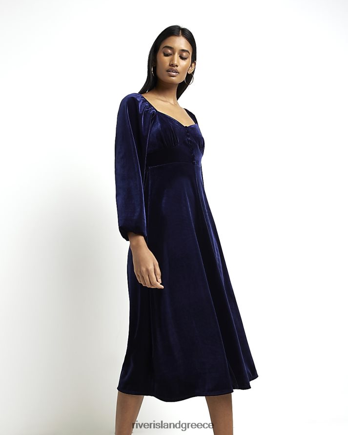 River Island ενδύματα ΠΟΛΕΜΙΚΟ ΝΑΥΤΙΚΟ γυναίκες Μίντι φόρεμα βελούδινο μακρυμάνικο B6N8X4954