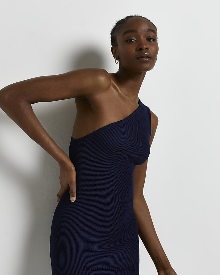 River Island ενδύματα ΠΟΛΕΜΙΚΟ ΝΑΥΤΙΚΟ γυναίκες μίντι φόρεμα με έναν ώμο B6N8X4089