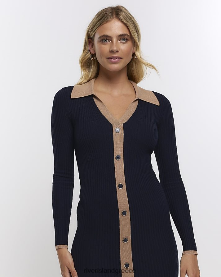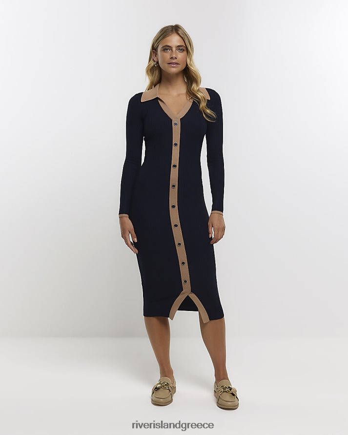 River Island ενδύματα ΠΟΛΕΜΙΚΟ ΝΑΥΤΙΚΟ γυναίκες μίντι φόρεμα με κουμπιά bodycon B6N8X1332