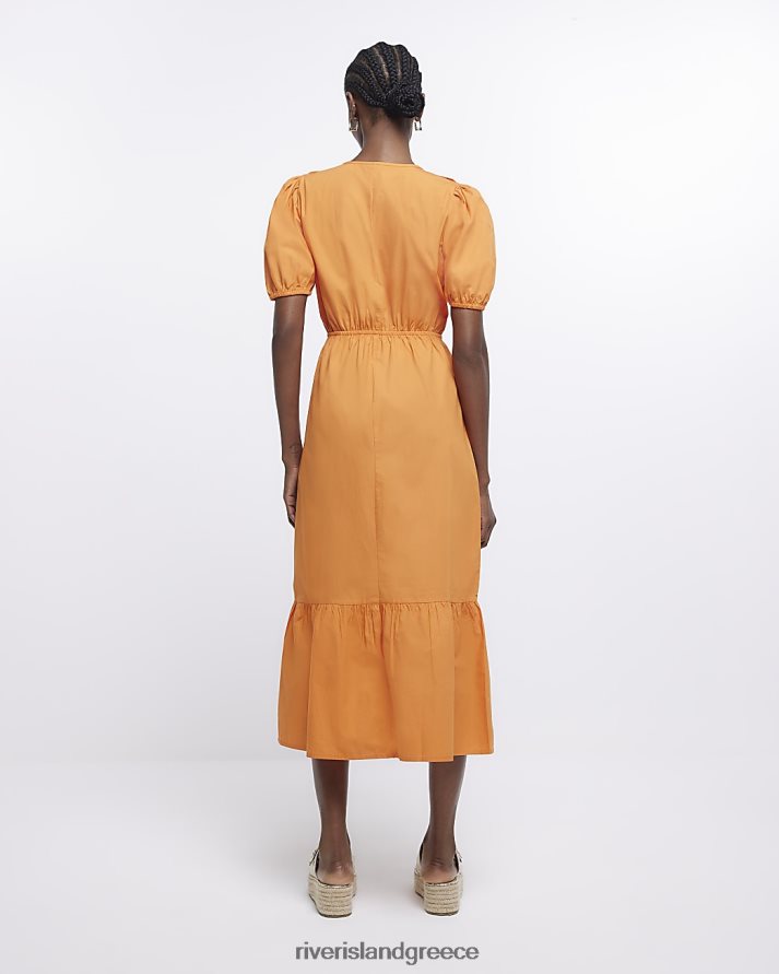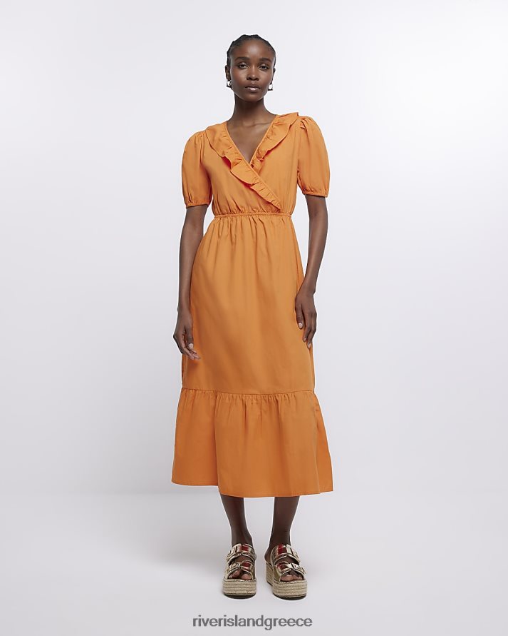 River Island ενδύματα πορτοκάλι γυναίκες μίντι φόρεμα με ριπ μανίκι B6N8X1693
