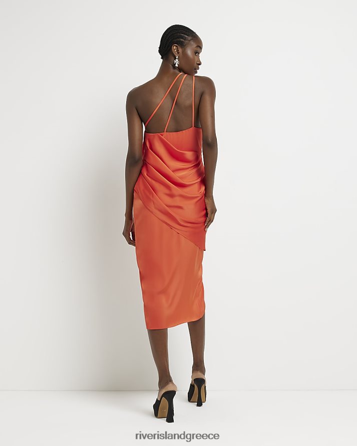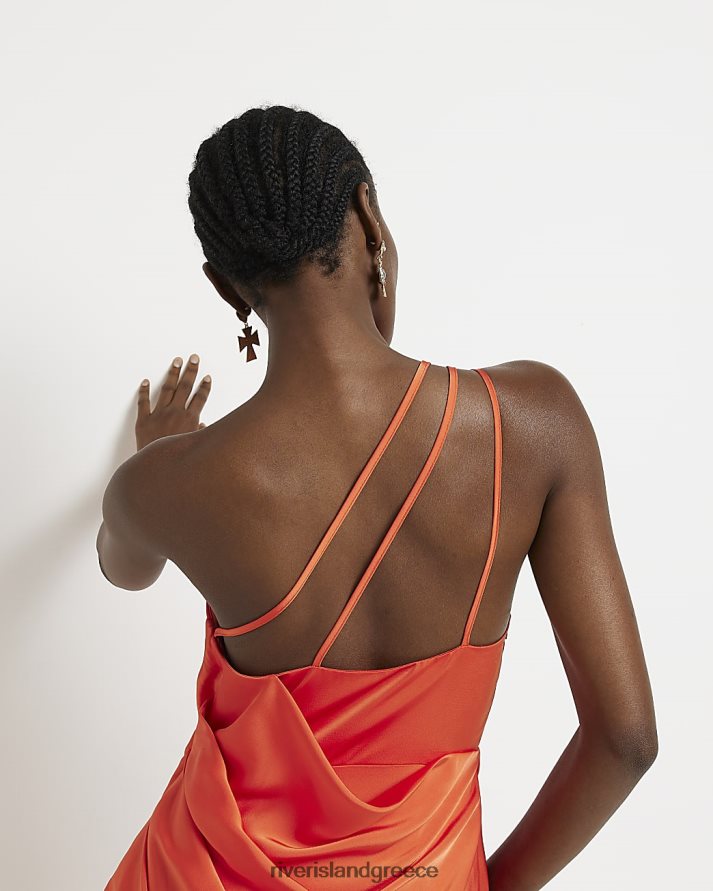 River Island ενδύματα πορτοκάλι γυναίκες μίντι φόρεμα σατέν με έναν ώμο B6N8X1659