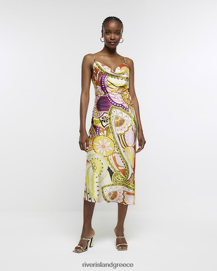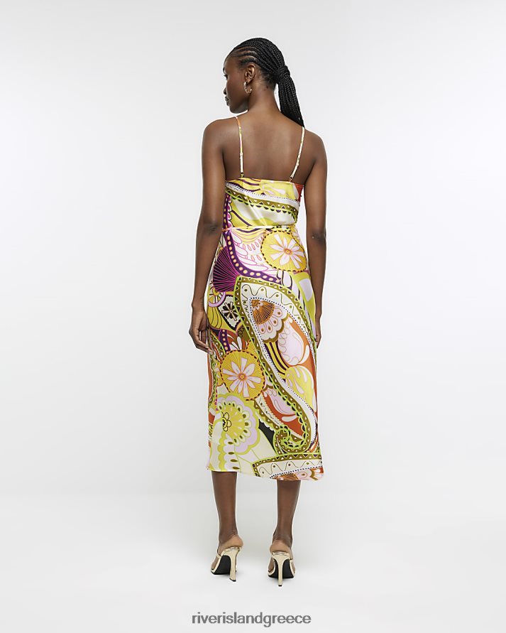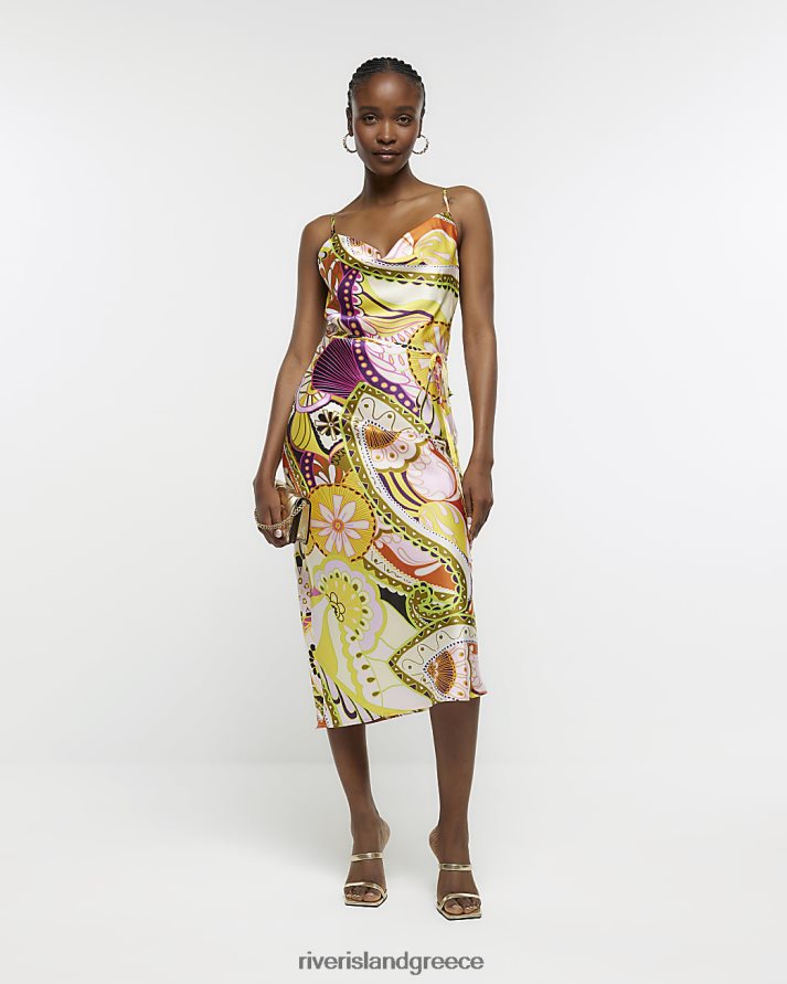 River Island ενδύματα πορτοκάλι γυναίκες σατέν φλοράλ μίντι φόρεμα B6N8X787