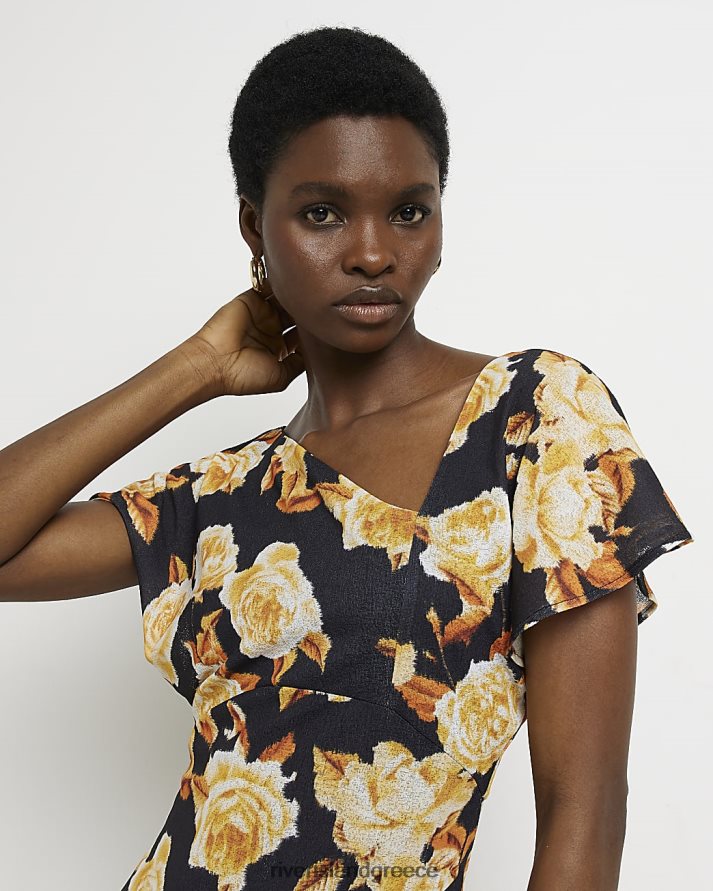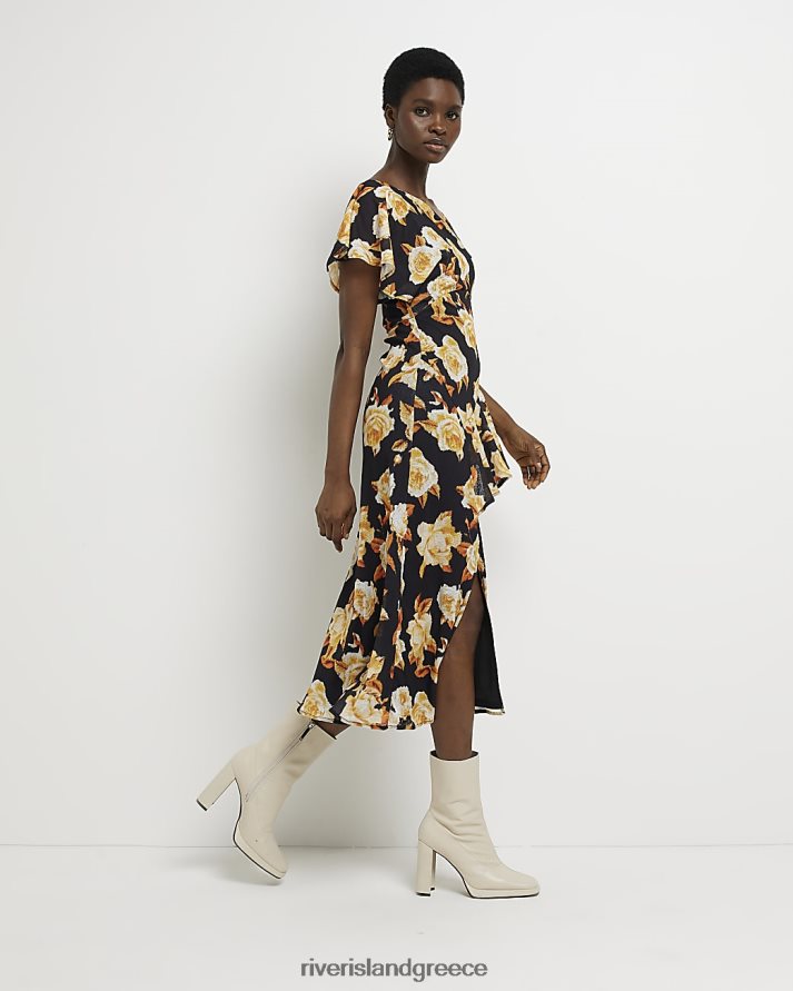 River Island ενδύματα πορτοκάλι γυναίκες floral frill shift midi φόρεμα B6N8X2153