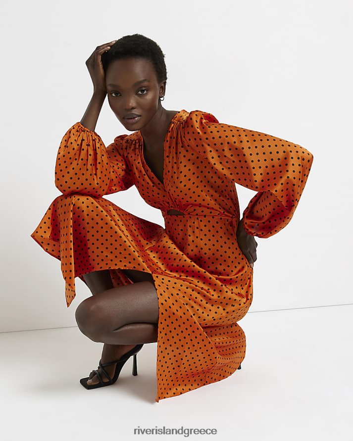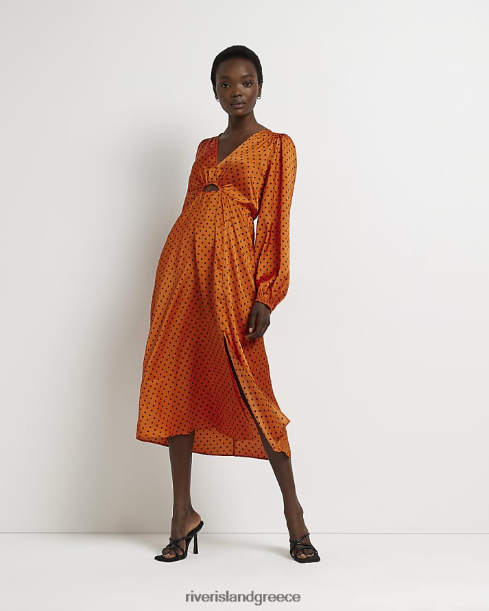 River Island ενδύματα πορτοκάλι γυναίκες spot cut out midi φόρεμα B6N8X1988
