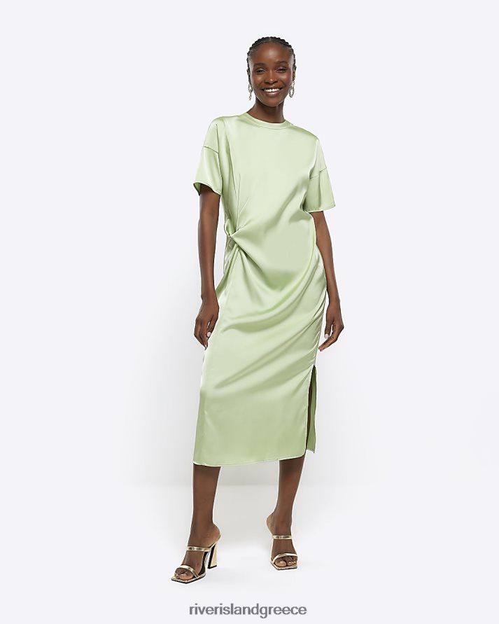 River Island ενδύματα πράσινος γυναίκες μίντι φόρεμα με λεπτομέρεια σατέν κόμπο B6N8X1327