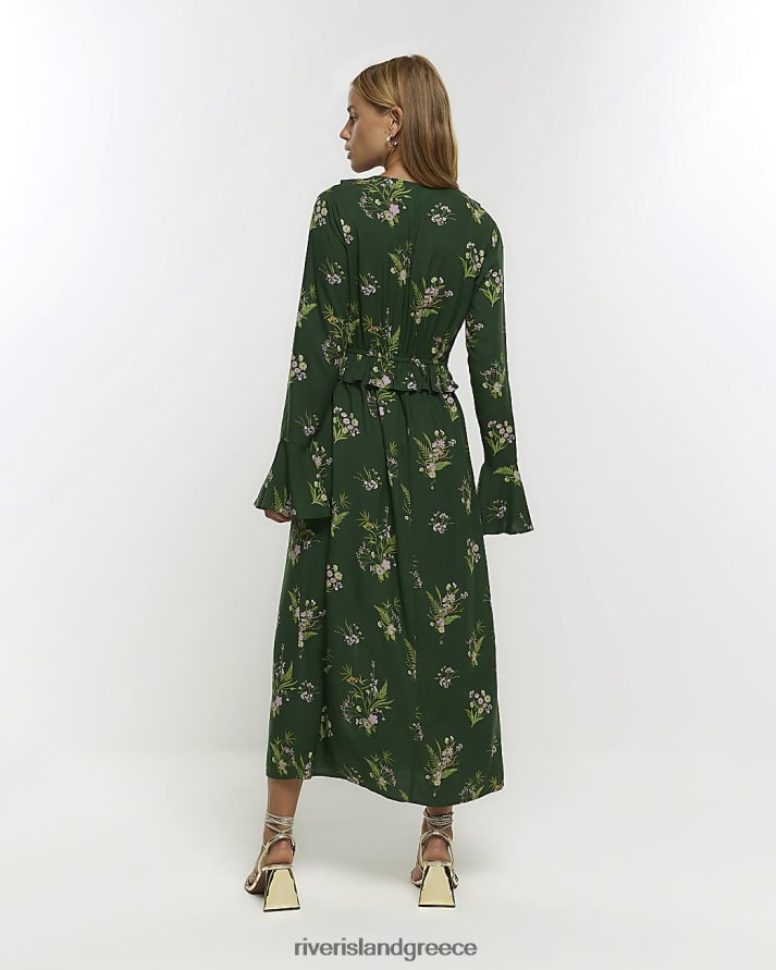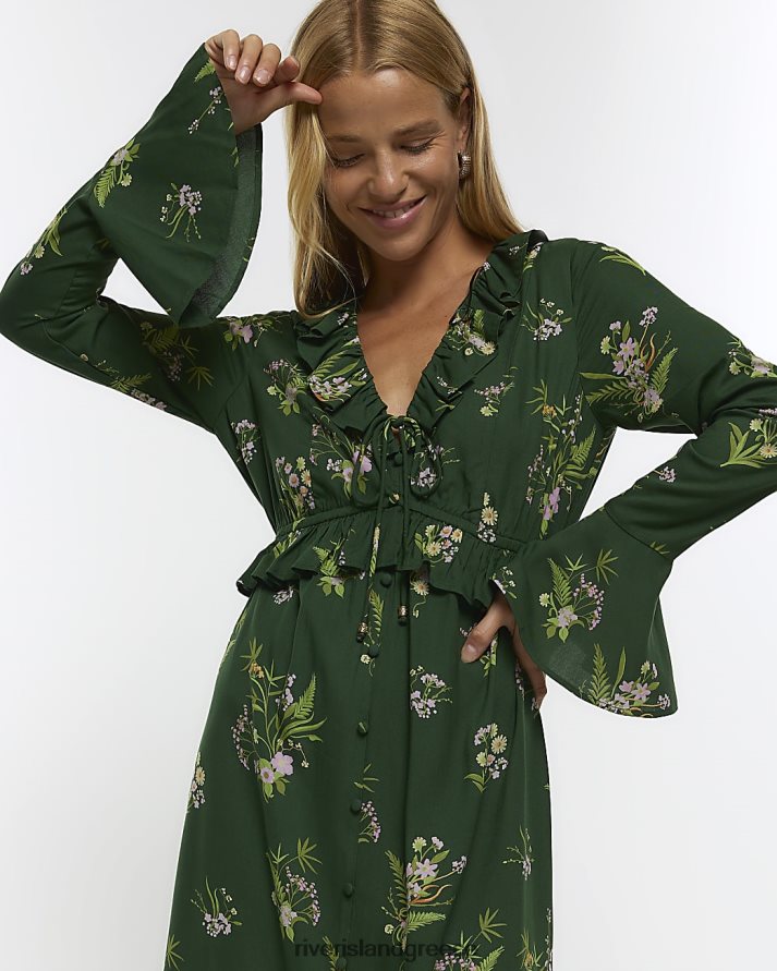 River Island ενδύματα πράσινος γυναίκες Μίντι φόρεμα με λουλουδάτο frill swing B6N8X144