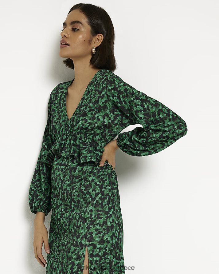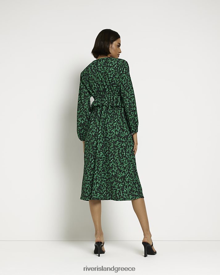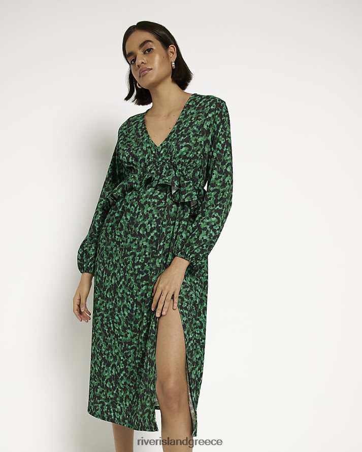 River Island ενδύματα πράσινος γυναίκες Μίντι φόρεμα με μακρυμάνικο spot frill B6N8X548