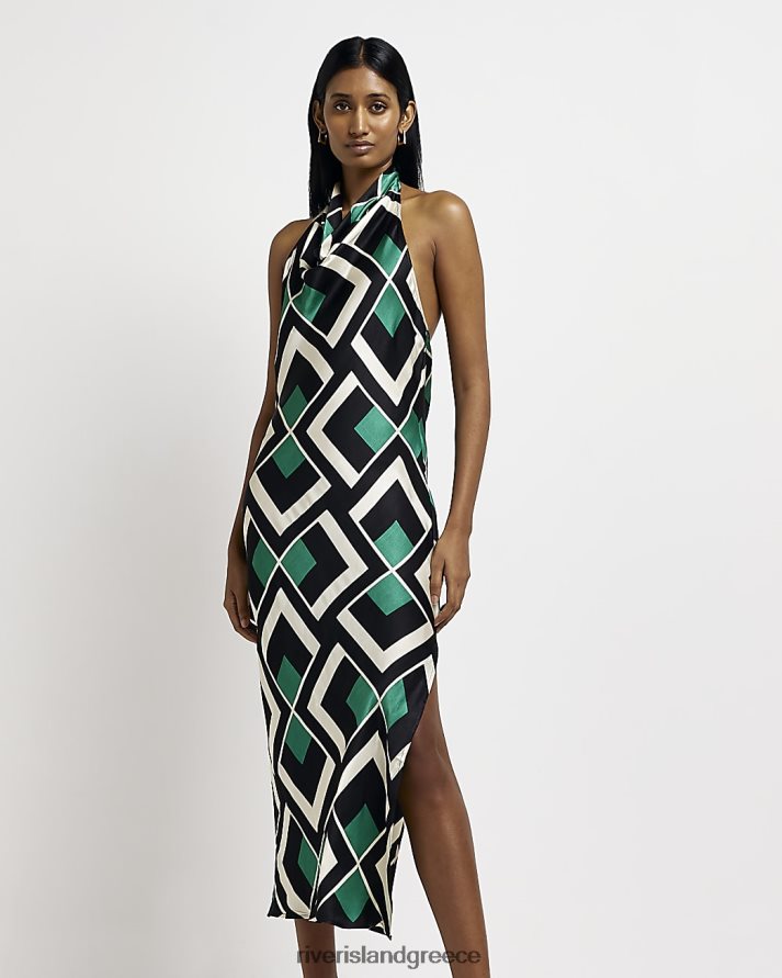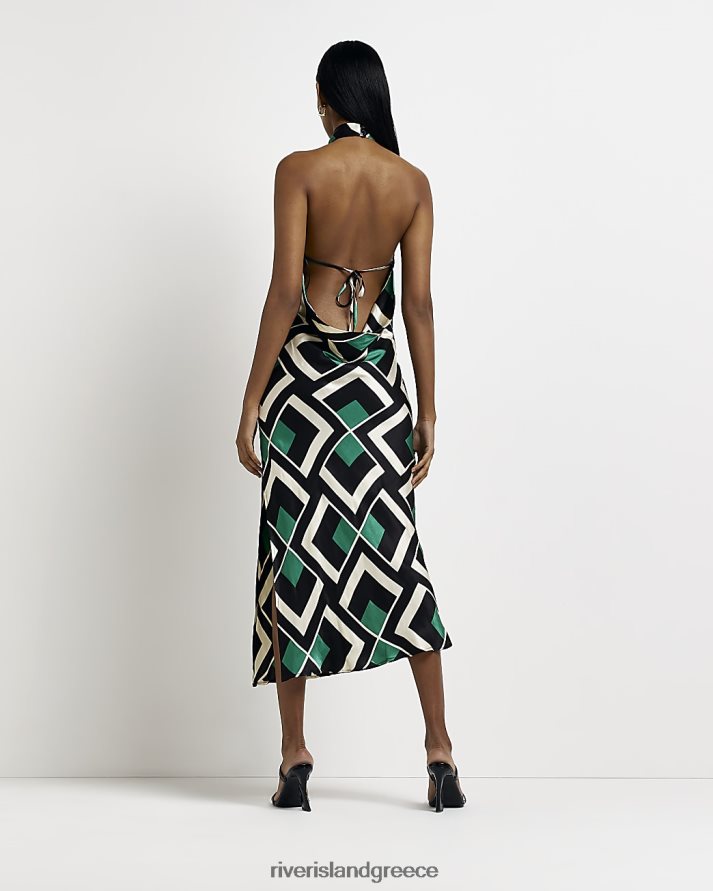 River Island ενδύματα πράσινος γυναίκες μίντι φόρεμα με σατέν λαιμόκοψη B6N8X1940