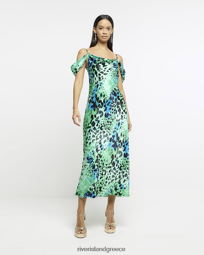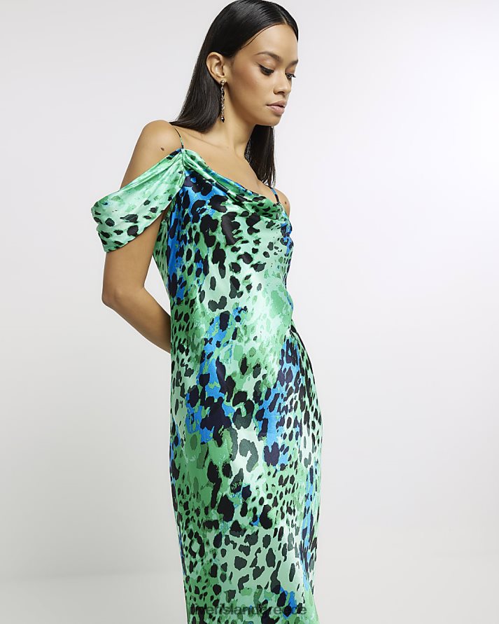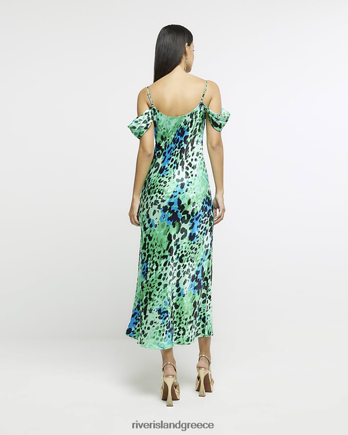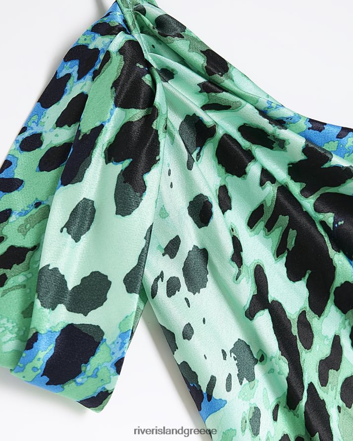 River Island ενδύματα πράσινος γυναίκες Μίντι φόρεμα με animal print λαιμόκοψη B6N8X4712