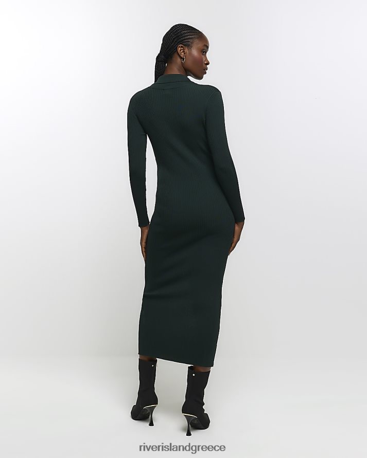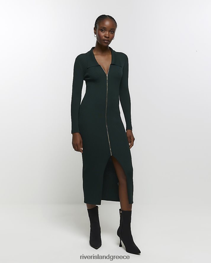 River Island ενδύματα πράσινος γυναίκες Πλεκτό μίντι φόρεμα με φερμουάρ B6N8X85