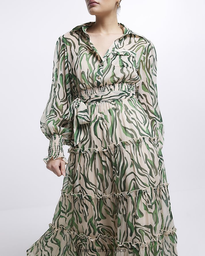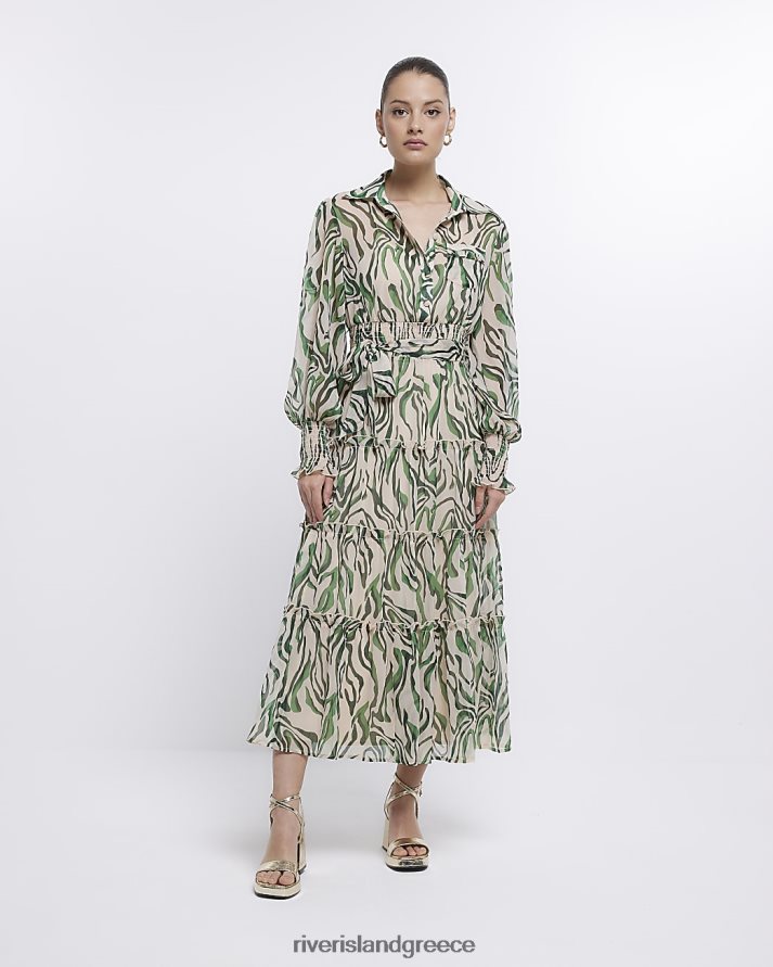 River Island ενδύματα πράσινος γυναίκες φόρεμα με μακρυμάνικο μίντι πουκάμισο B6N8X1728