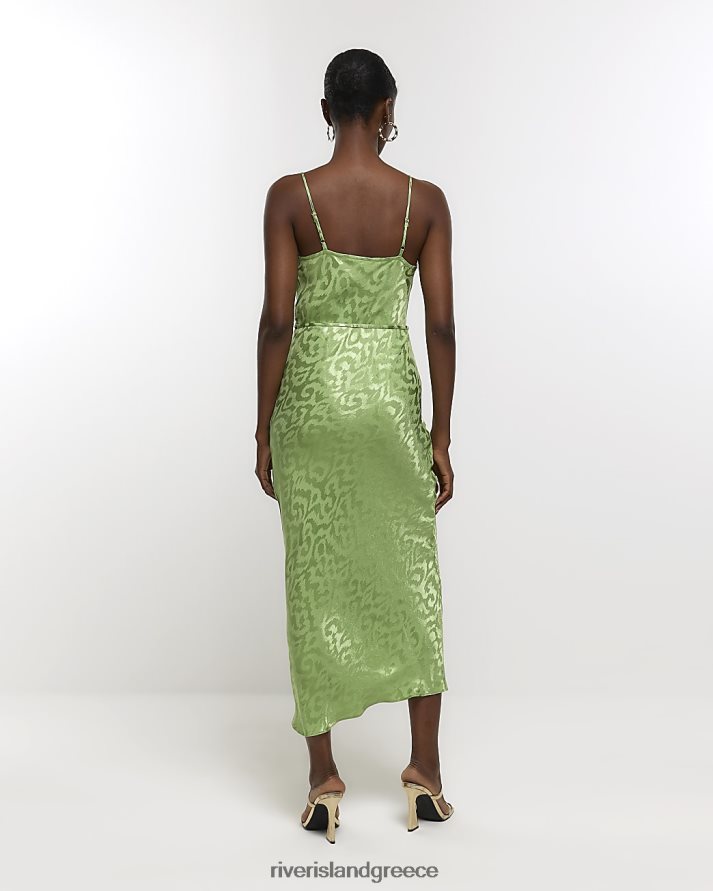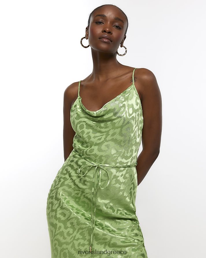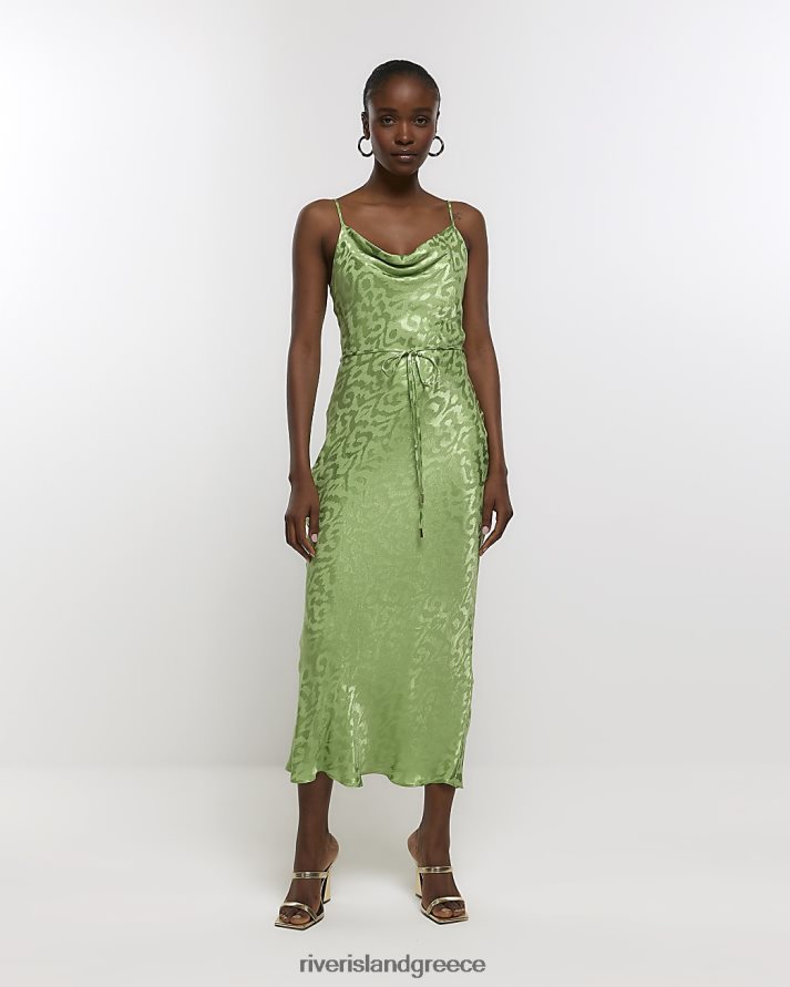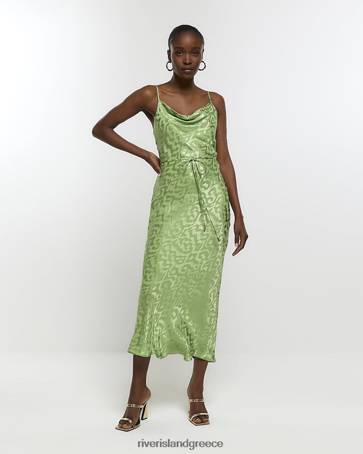 River Island ενδύματα πράσινος γυναίκες midi φόρεμα με γραβάτα με κουκούλα λαιμόκοψη B6N8X4484