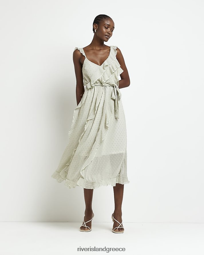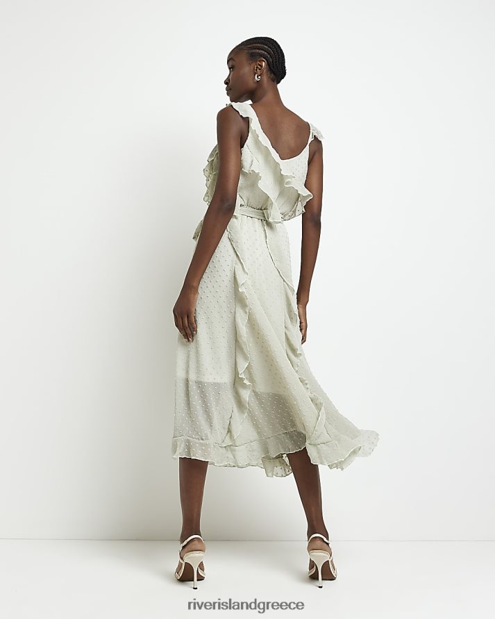 River Island ενδύματα πράσινος γυναίκες midi φόρεμα με frill tie μέση B6N8X2017
