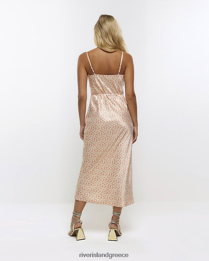 River Island ενδύματα ροζ γυναίκες λουλουδάτο μίντι φόρεμα με λαιμόκοψη B6N8X788