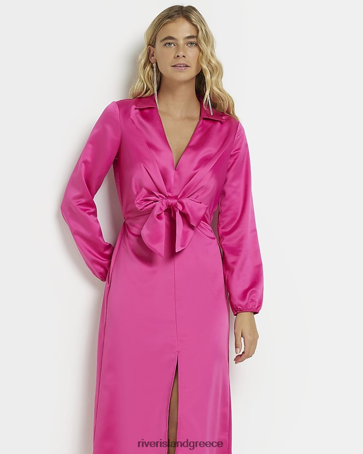 River Island ενδύματα ροζ γυναίκες Μίντι πουκάμισο με φιόγκο με λεπτομέρεια B6N8X1954