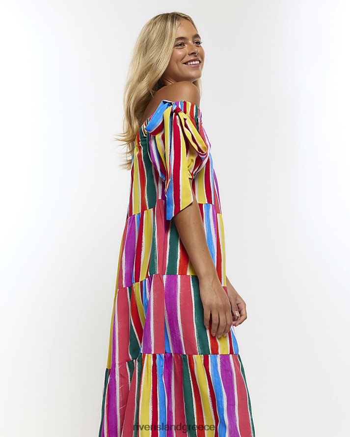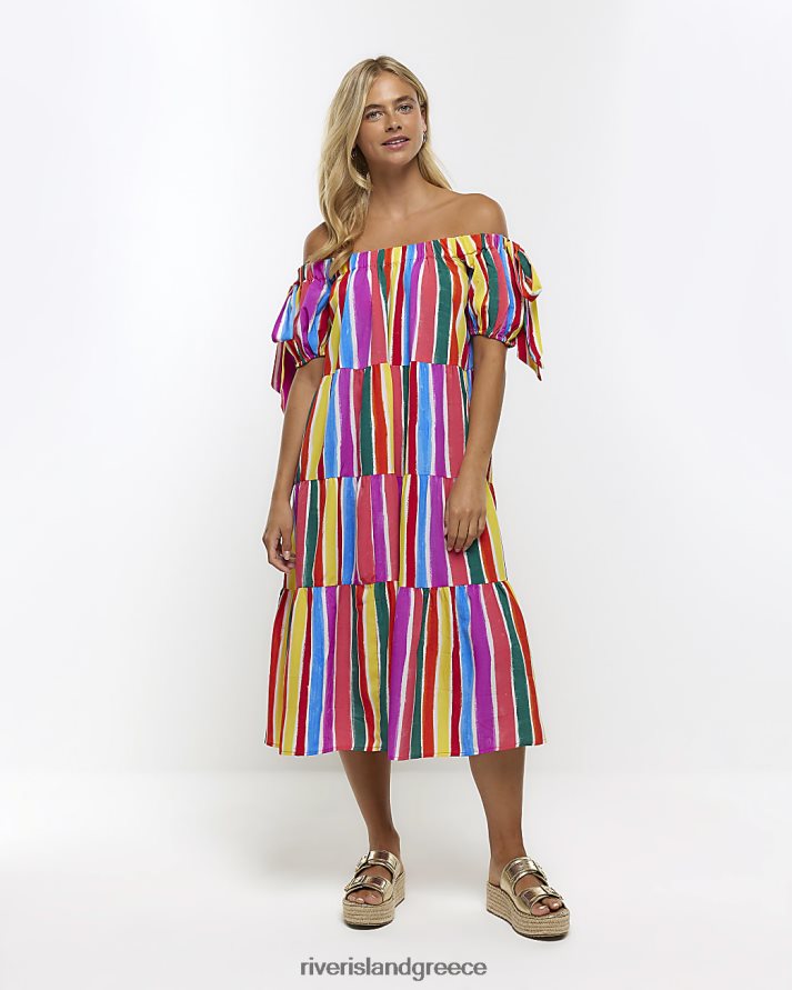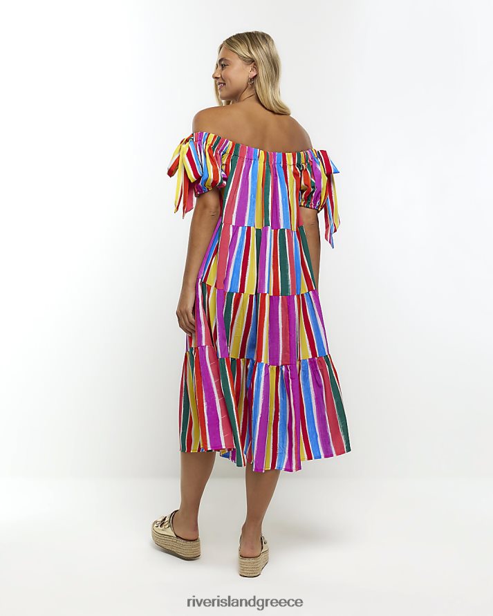 River Island ενδύματα ροζ γυναίκες μίντι φόρεμα με ρίγες B6N8X4619
