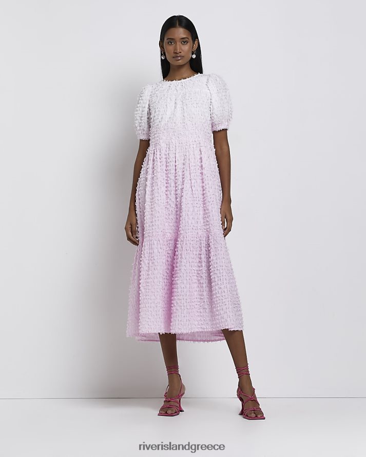 River Island ενδύματα ροζ γυναίκες Μίντι φόρεμα με όμπρε ανάγλυφη smock B6N8X1702
