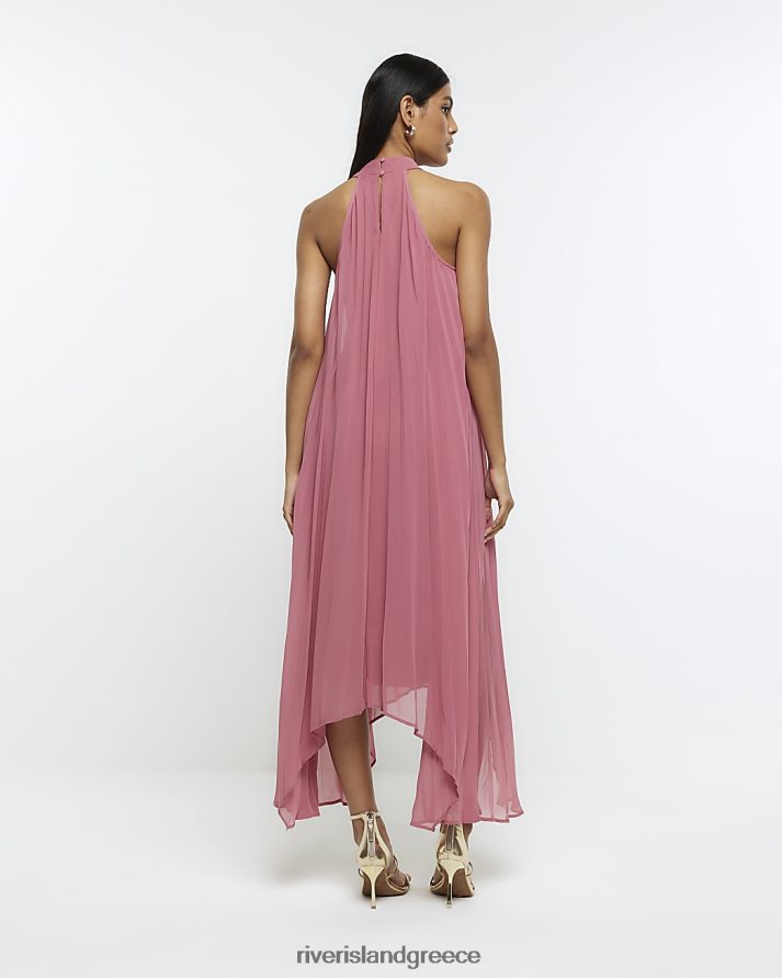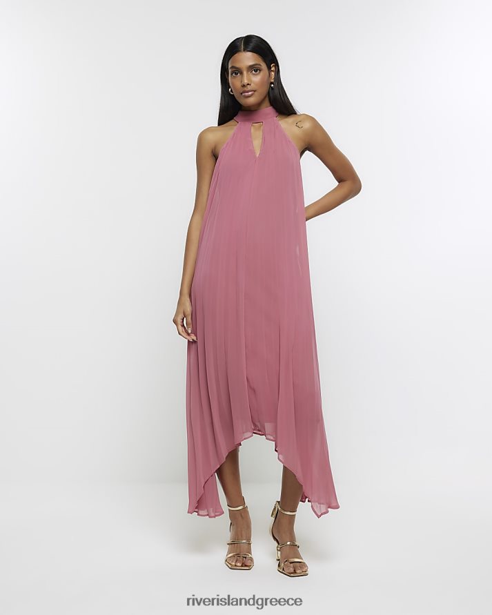 River Island ενδύματα ροζ γυναίκες μίντι φόρεμα plisse choker slip B6N8X851