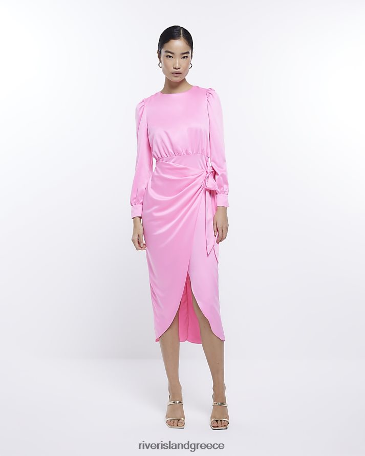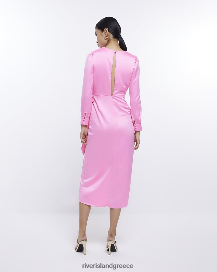 River Island ενδύματα ροζ γυναίκες σατέν μακρυμάνικο μίντι φόρεμα B6N8X4936