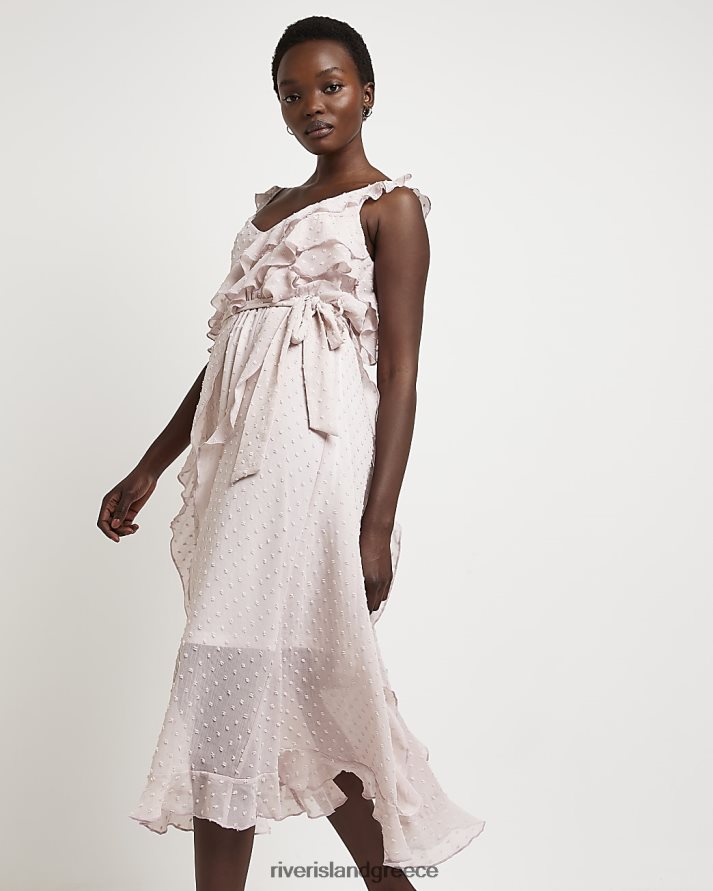 River Island ενδύματα ροζ γυναίκες midi φόρεμα με frill tie μέση B6N8X2019
