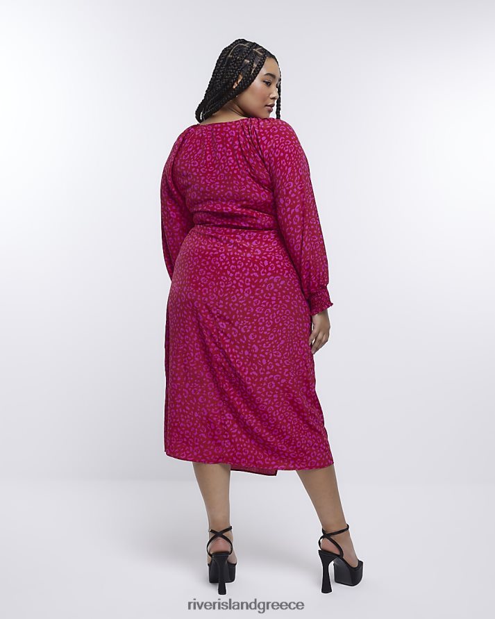 River Island ενδύματα ροζ γυναίκες plus μίντι φόρεμα με εμπριμέ με εμπριμέ B6N8X5200