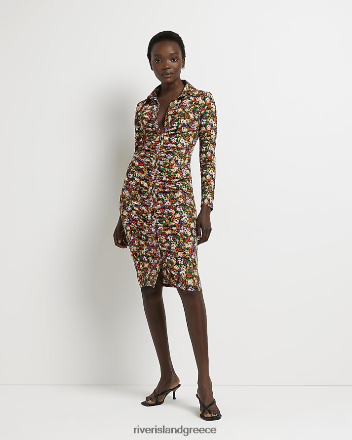 River Island ενδύματα το κόκκινο γυναίκες λουλουδάτο μίντι φόρεμα πουκάμισο B6N8X1545