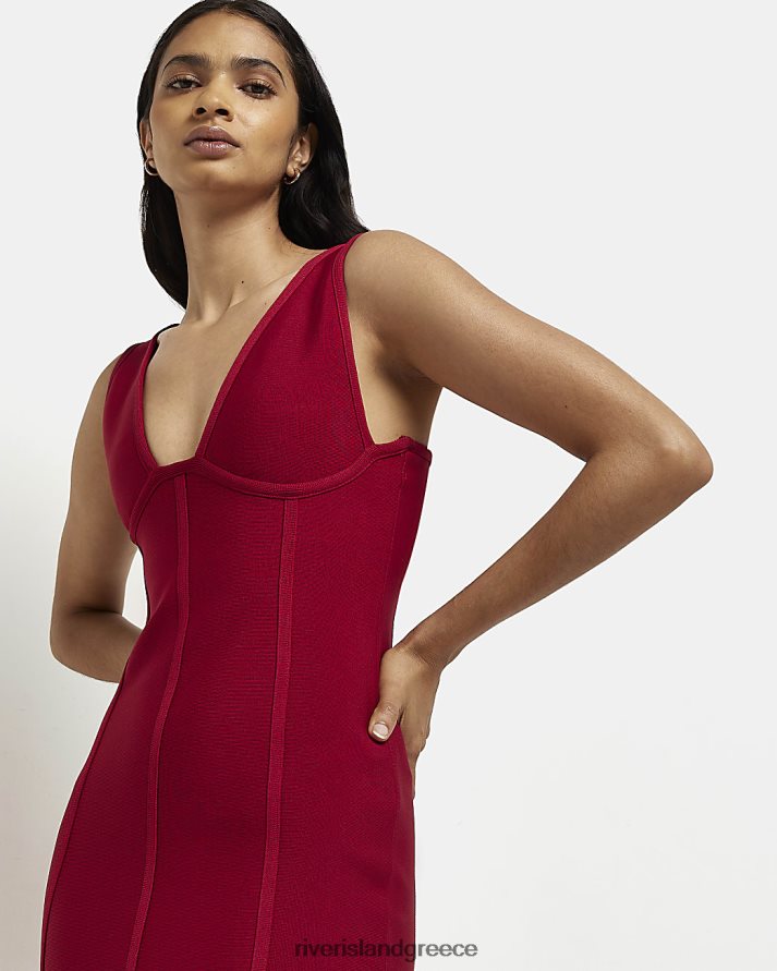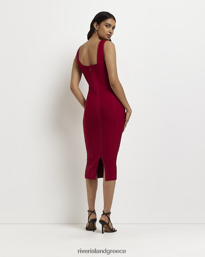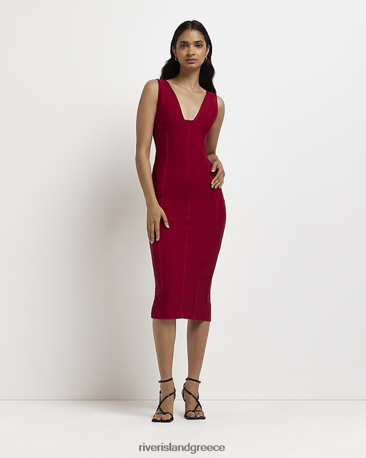 River Island ενδύματα το κόκκινο γυναίκες μίντι φόρεμα αμάνικο bodycon B6N8X2078