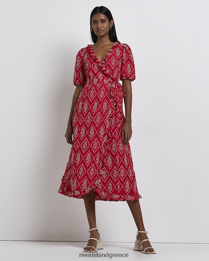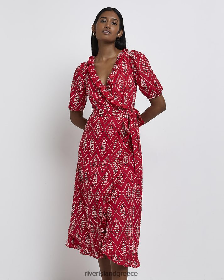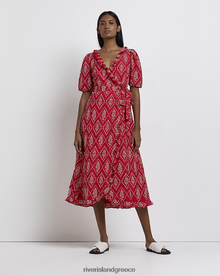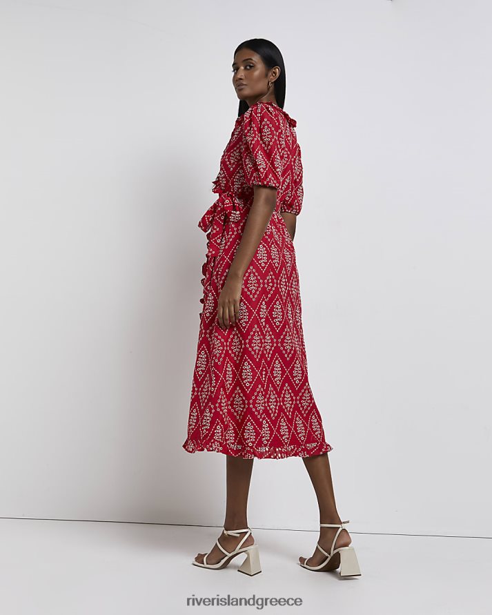 River Island ενδύματα το κόκκινο γυναίκες Μίντι φόρεμα με εμπριμέ wrap B6N8X5000