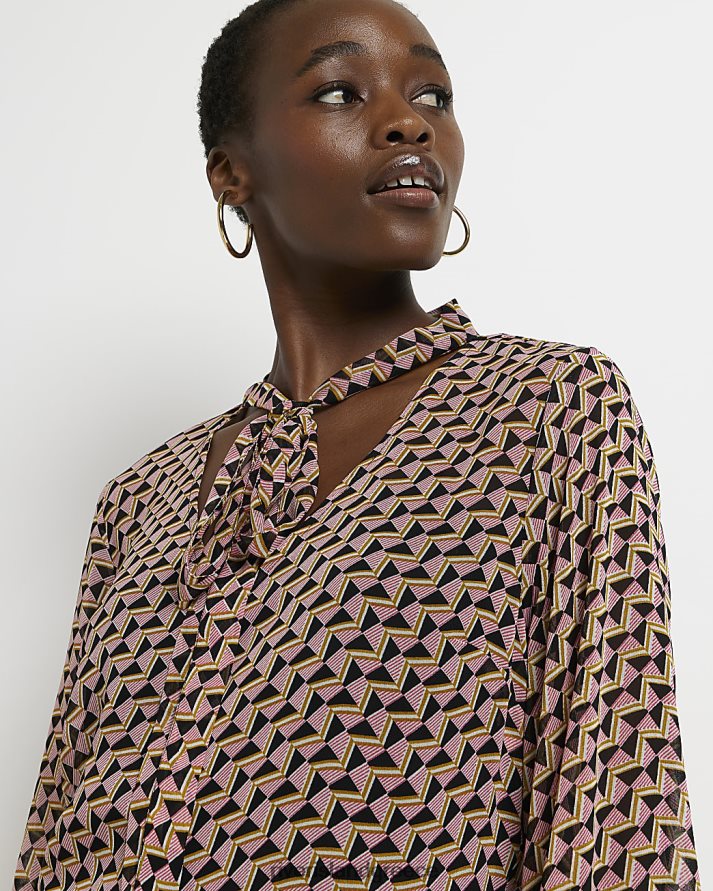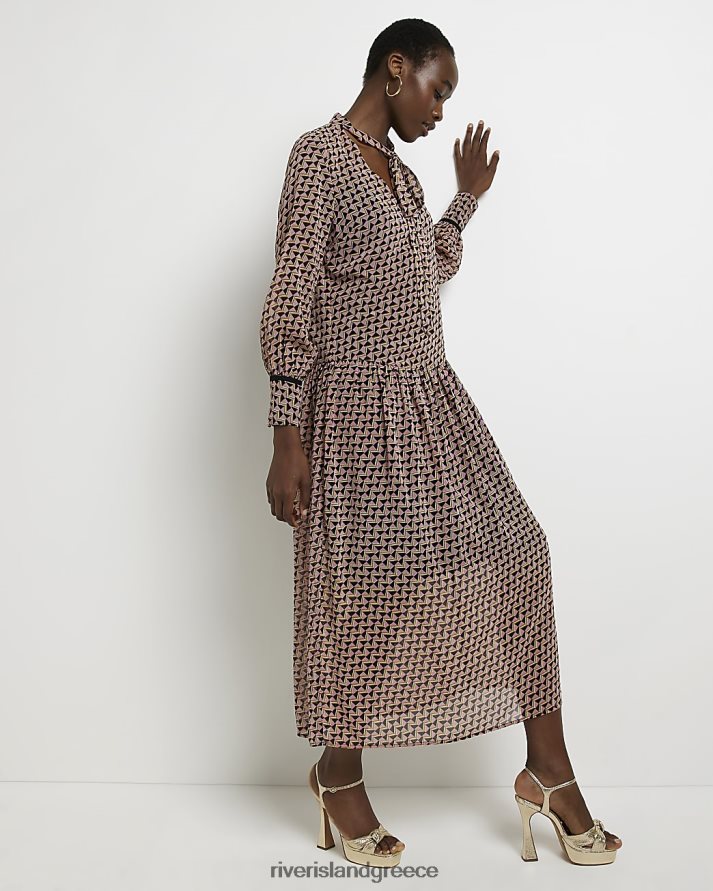 River Island ενδύματα το κόκκινο γυναίκες Μίντι φόρεμα με ψηλή εμπριμέ γραβάτα B6N8X4980