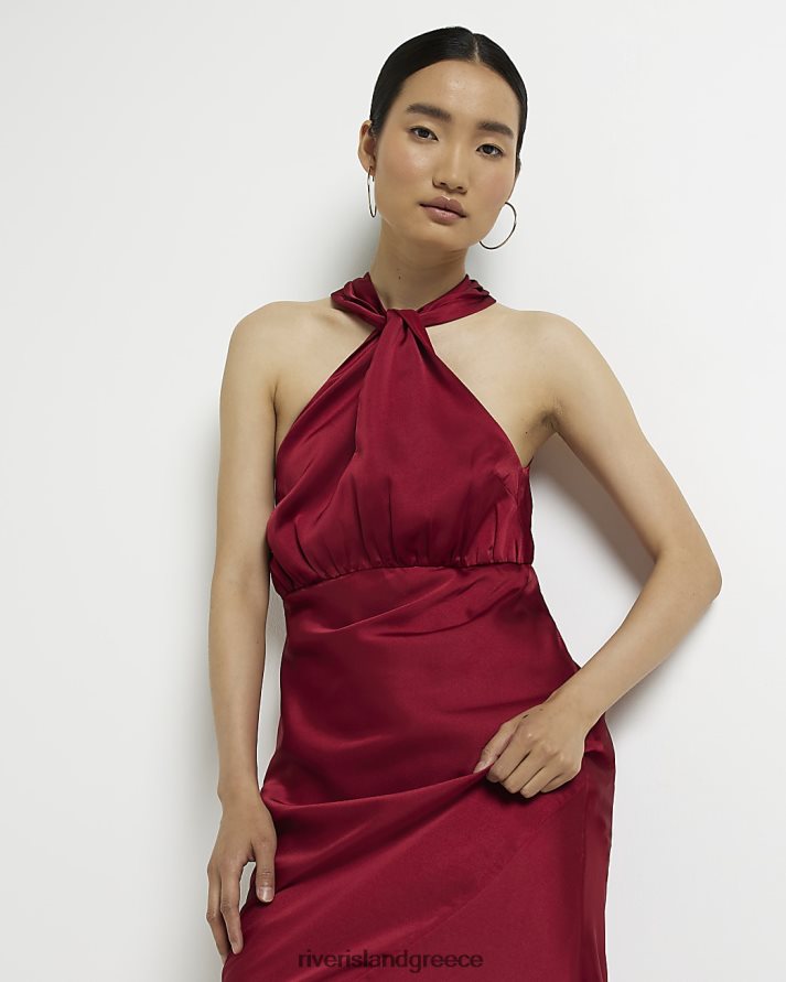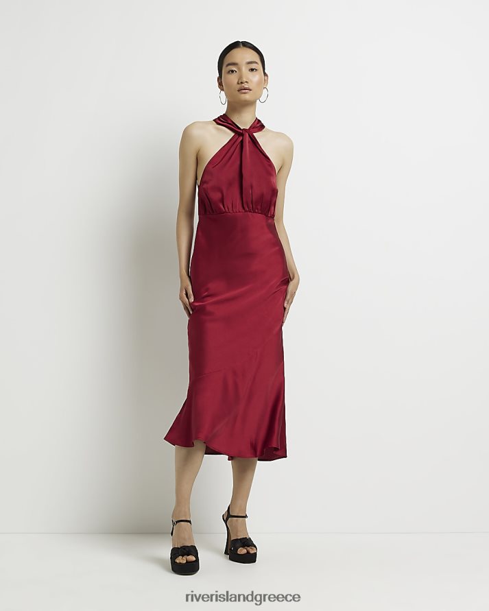 River Island ενδύματα το κόκκινο γυναίκες Σατέν μίντι φόρεμα με λαιμόκοψη B6N8X1727