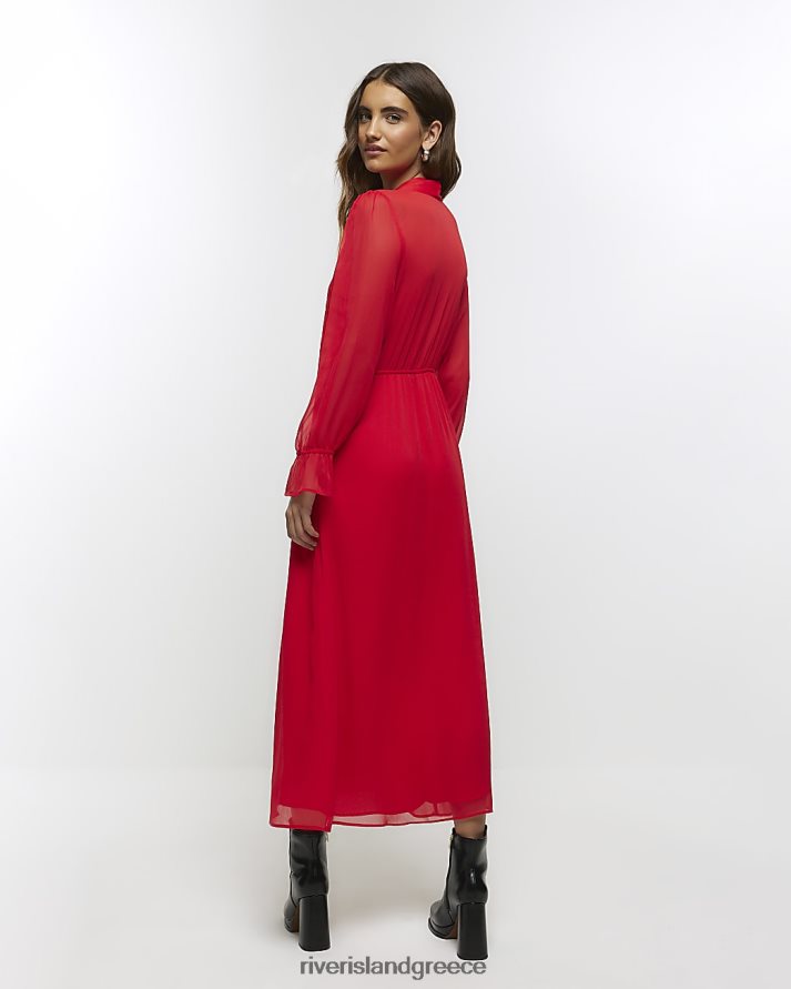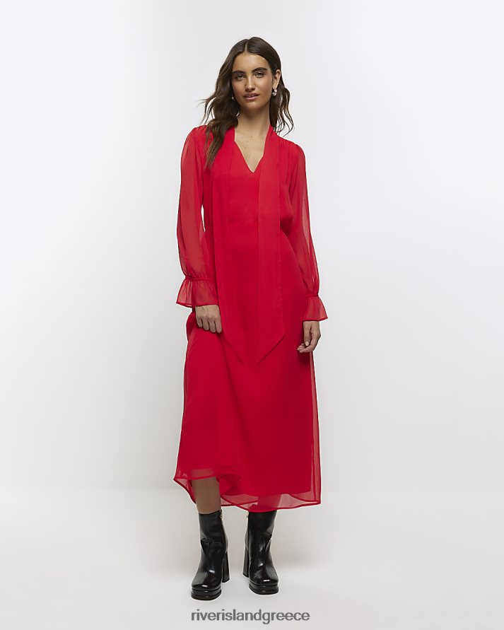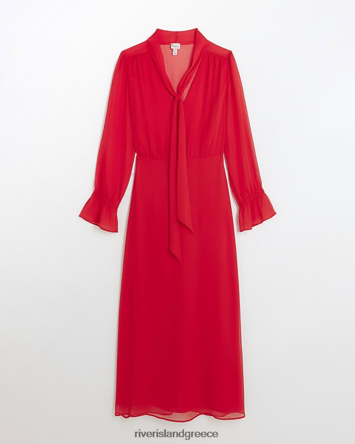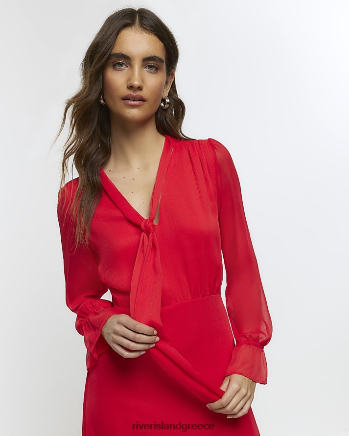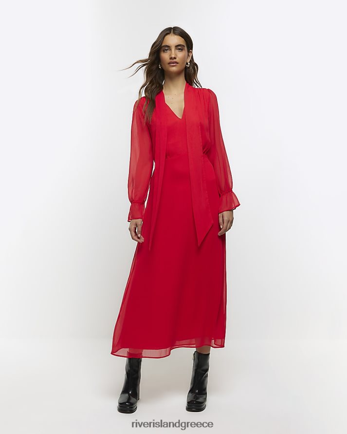 River Island ενδύματα το κόκκινο γυναίκες σιφόν γραβάτα μπροστινή κούνια μίντι φόρεμα B6N8X4295