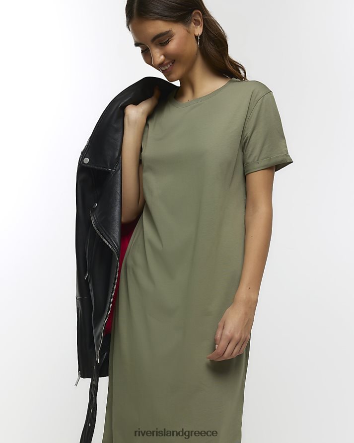 River Island ενδύματα χακί γυναίκες κοντομάνικο t-shirt midi φόρεμα B6N8X1175
