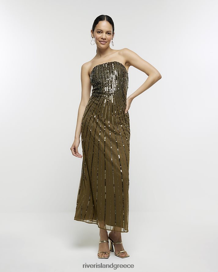 River Island ενδύματα χακί γυναίκες μίντι φόρεμα με παγιέτες B6N8X400