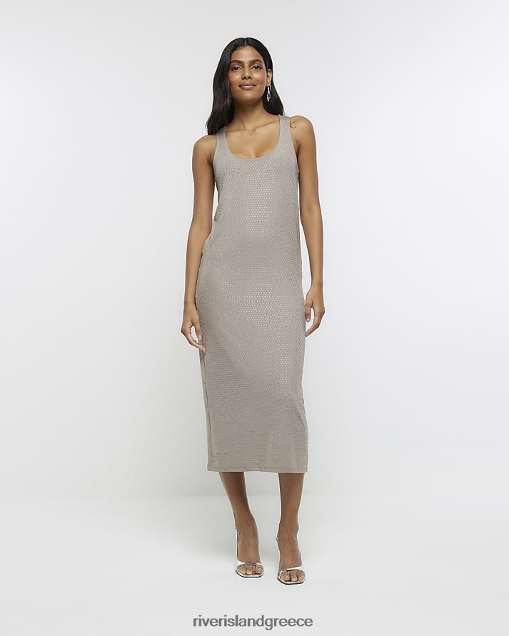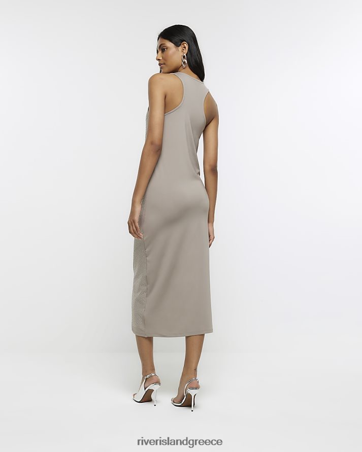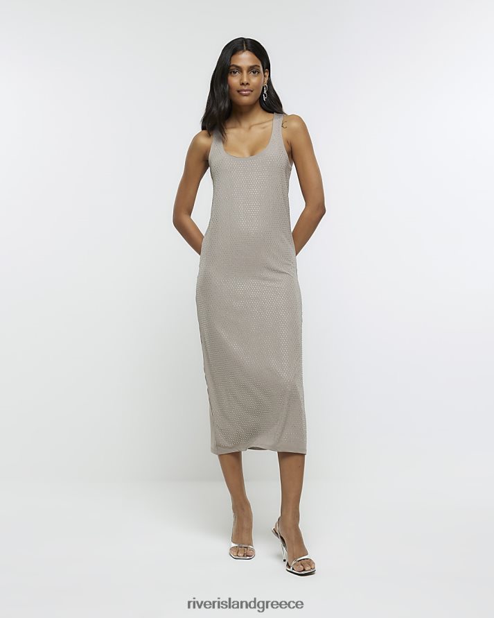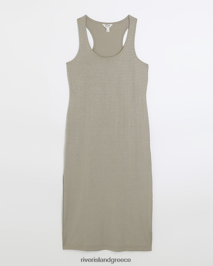 River Island ενδύματα χακί γυναίκες μίντι φόρεμα diamante αμάνικο bodycon B6N8X4290