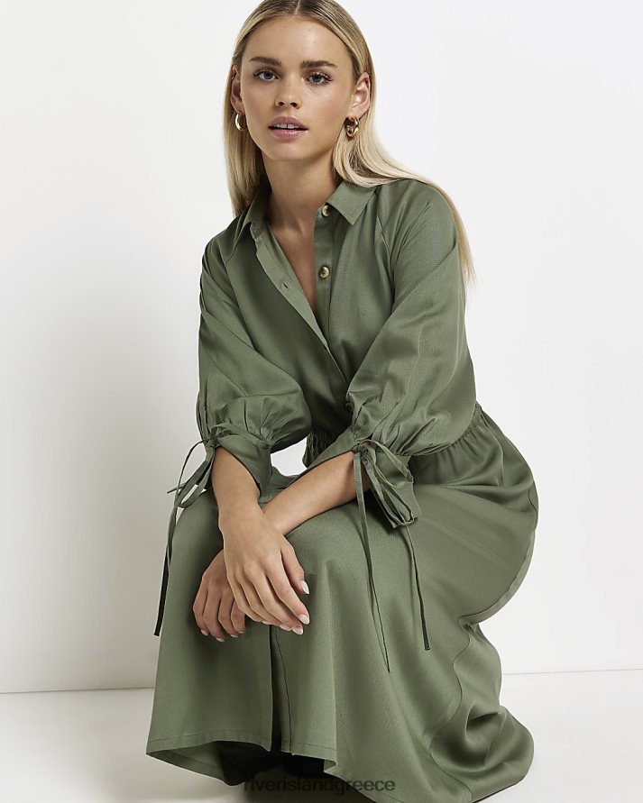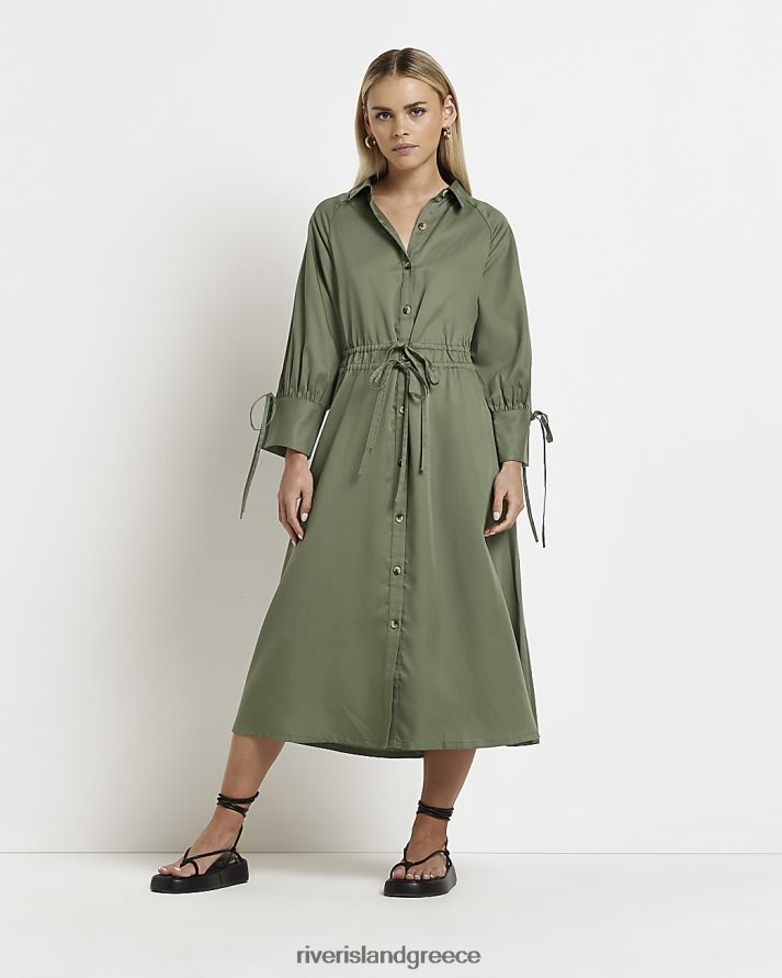 River Island ενδύματα χακί γυναίκες petite midi πουκάμισο φόρεμα B6N8X5325