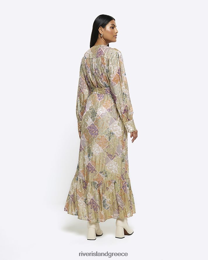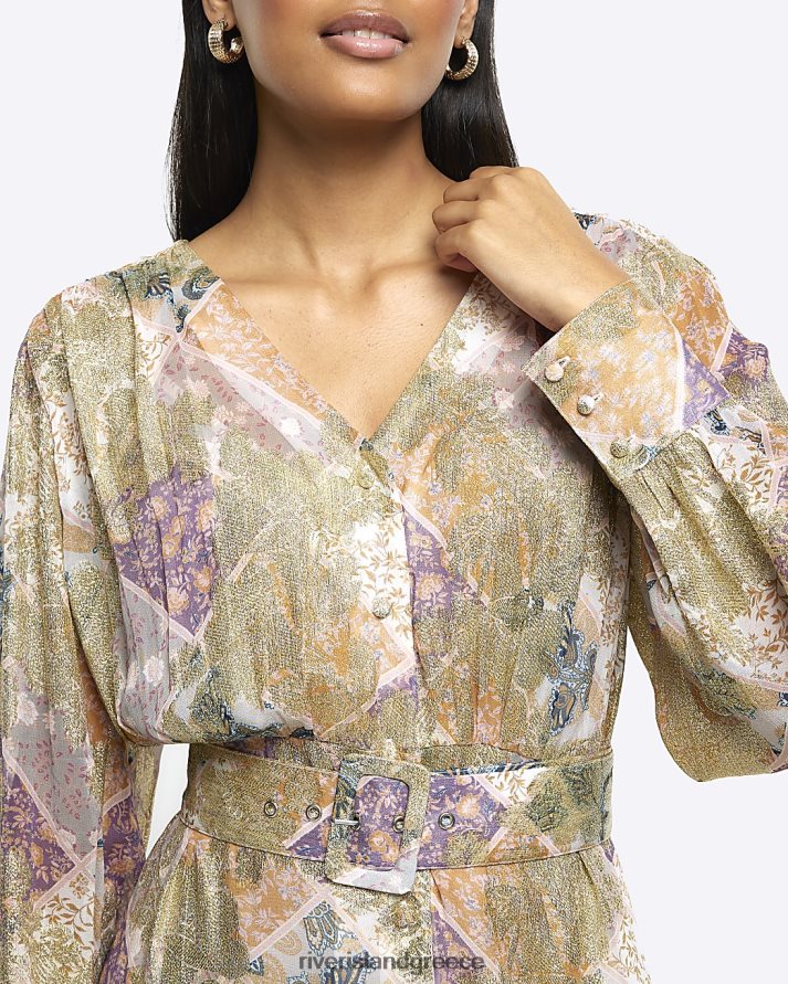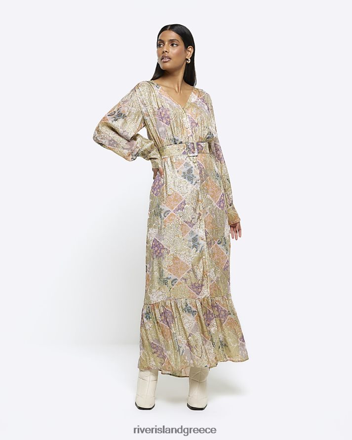 River Island ενδύματα χρυσός γυναίκες λουλουδάτο μίντι φόρεμα με ζωσμένη κούνια B6N8X893