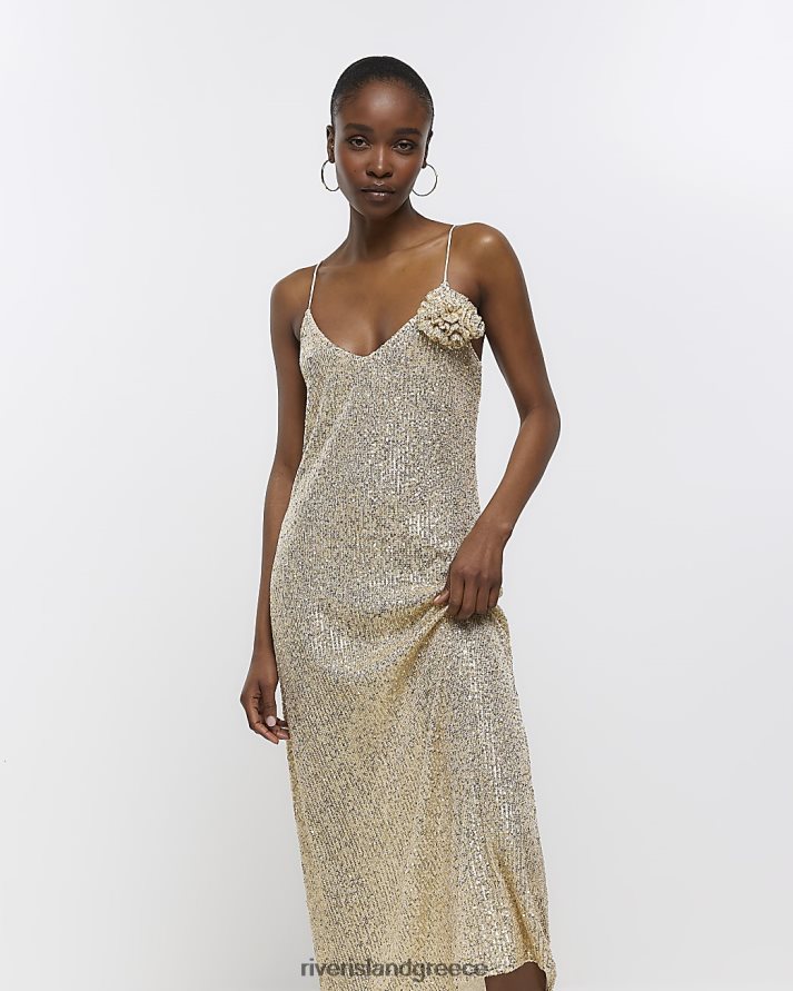 River Island ενδύματα χρυσός γυναίκες μίντι φόρεμα με παγιέτες κορσάζ B6N8X4679