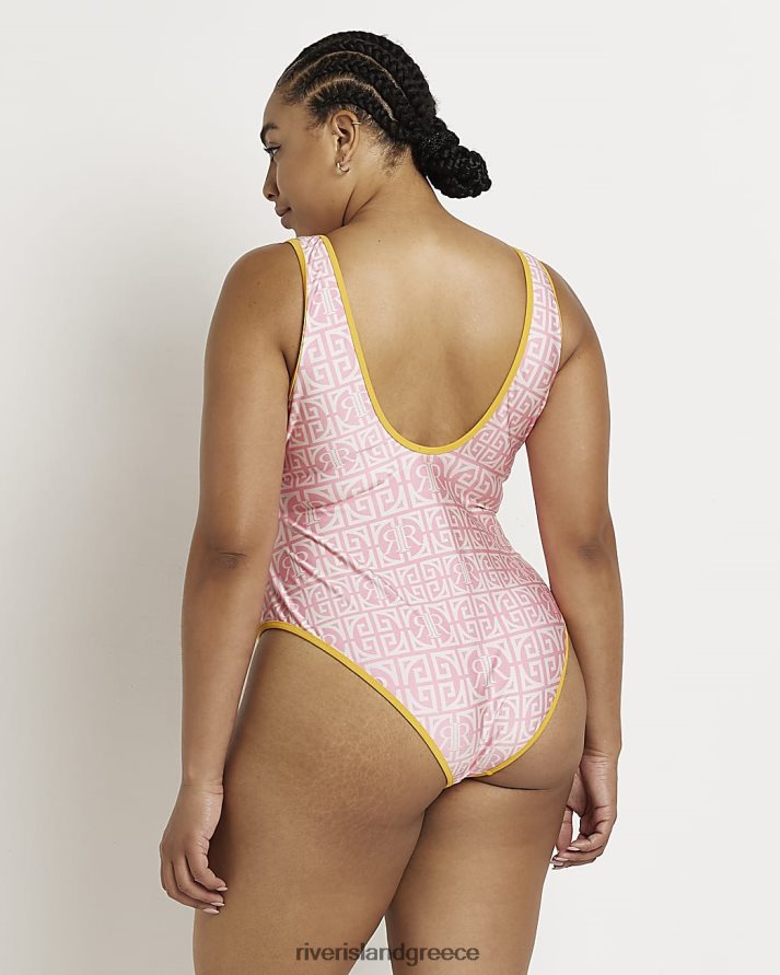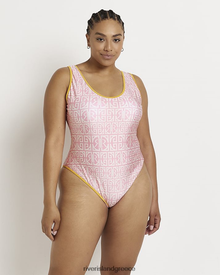 River Island ενδύματα ροζ γυναίκες plus ri μονόγραμμα εμπριμέ μαγιό B6N8X5203