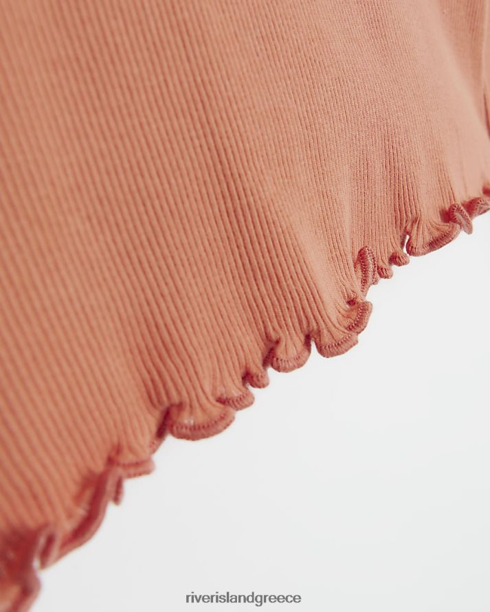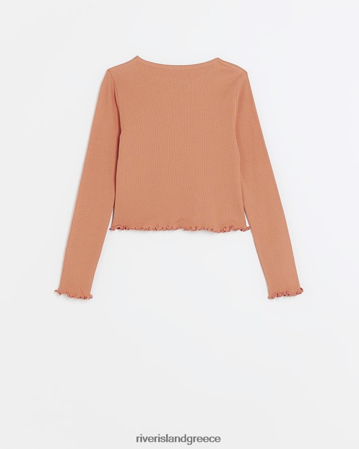 River Island ενδύματα κοράλλι κορίτσια g μακρυμάνικο στρίφωμα rib μαρούλι B6N8X3324