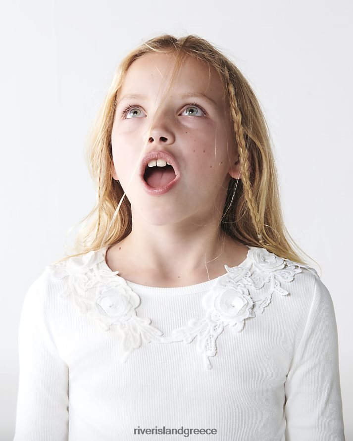 River Island ενδύματα κρέμα κορίτσια g κορσάζ μακρυμάνικο τοπ B6N8X3297