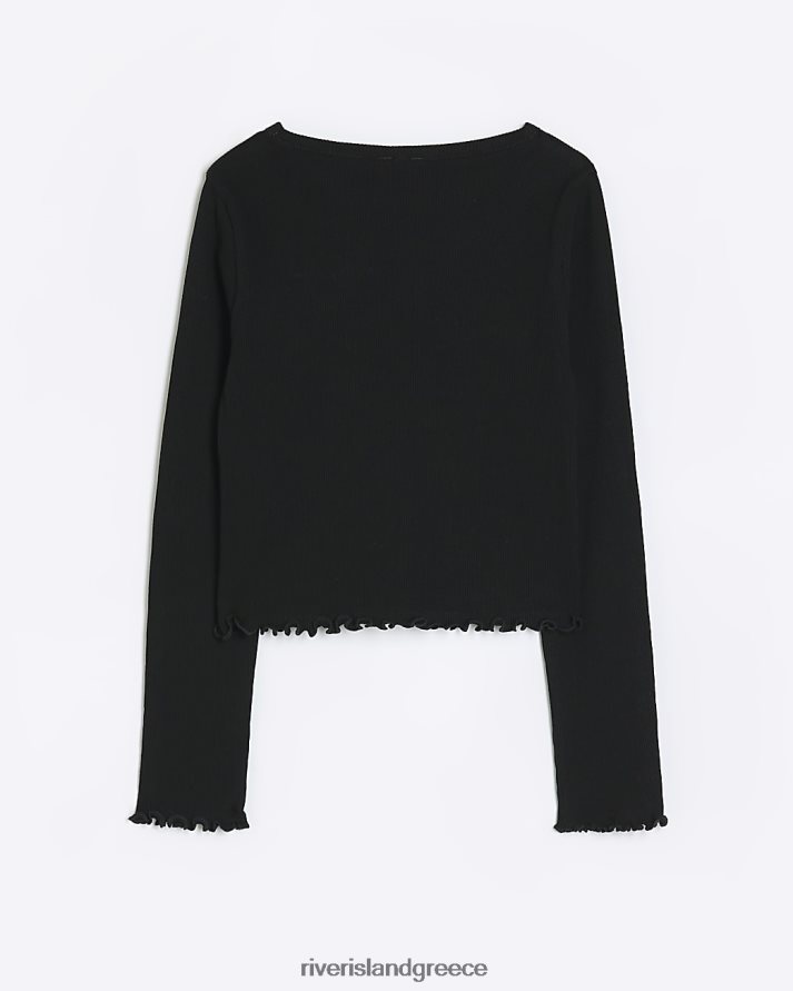River Island ενδύματα μαύρος κορίτσια g μακρυμάνικο στρίφωμα rib μαρούλι B6N8X3307