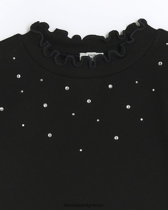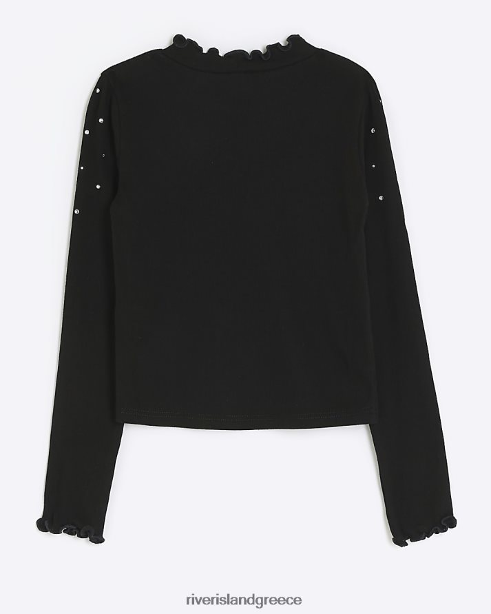 River Island ενδύματα μαύρος κορίτσια g με μακρυμάνικο μπλουζάκι διακοσμημένο B6N8X3172