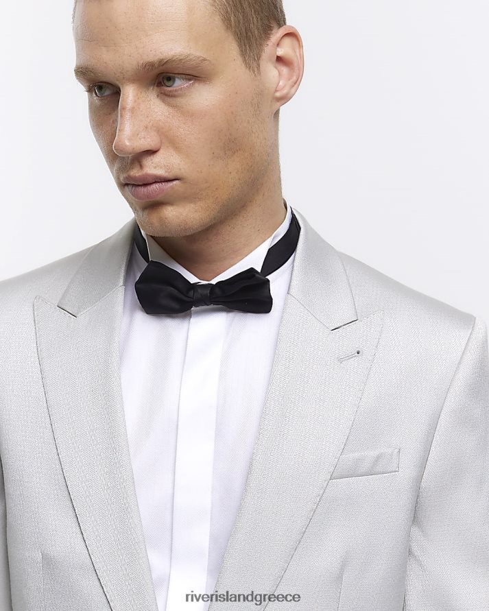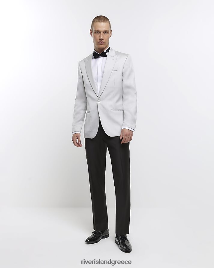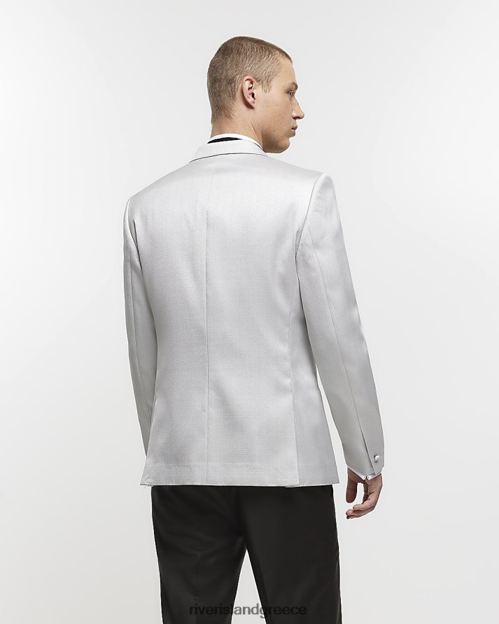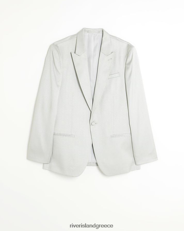 River Island ενδύματα ασήμι άνδρες κανονική εφαρμογή μεταλλικό σμόκιν μπλέιζερ B6N8X5781