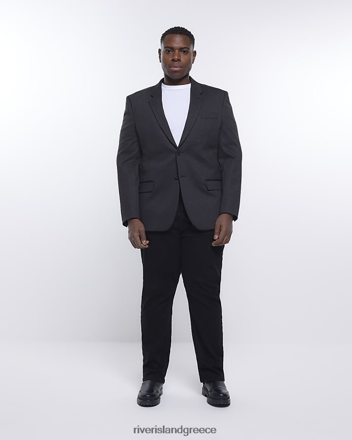 River Island ενδύματα γκρί άνδρες μεγάλο & ψηλό slim fit ανάγλυφο blazer B6N8X5982