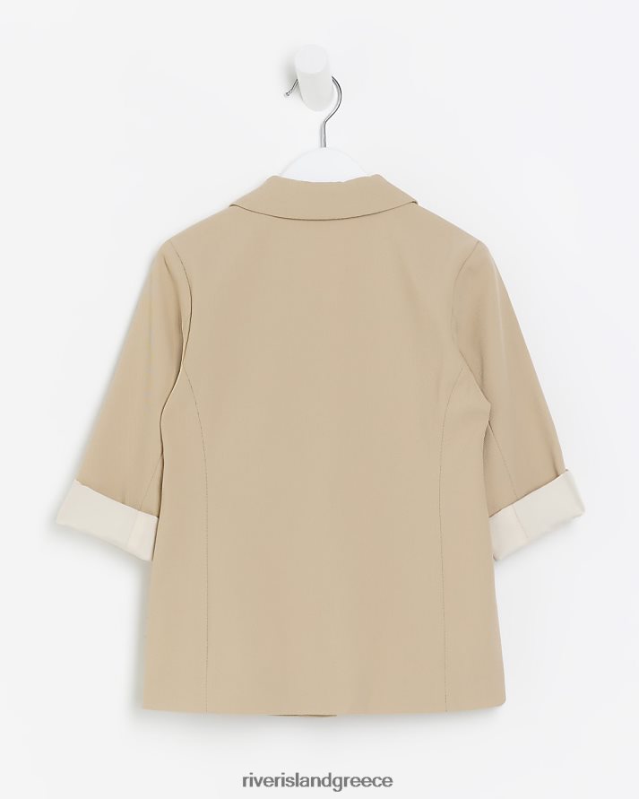 River Island ενδύματα μπεζ κορίτσια mg μπλέιζερ με ρολό μανίκι B6N8X3485